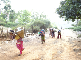 • 村の子供たちが水汲みをしている様子